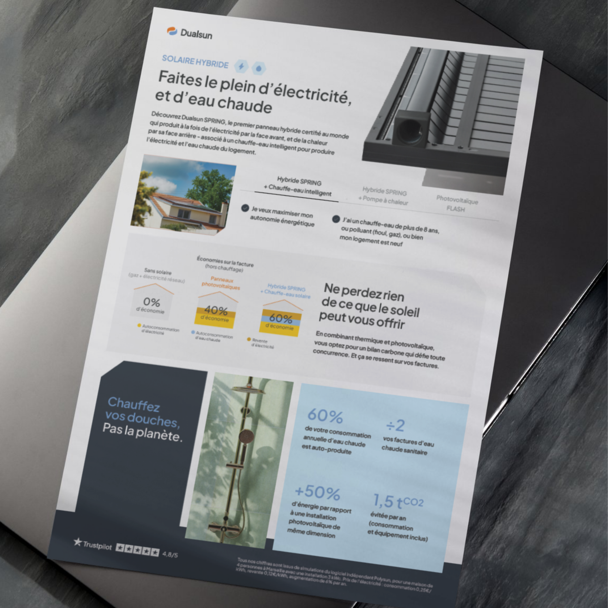 Paquet de 100 fiches de présentation de l'offre hybride + chauffe eau pour vos rendez-vous clients.