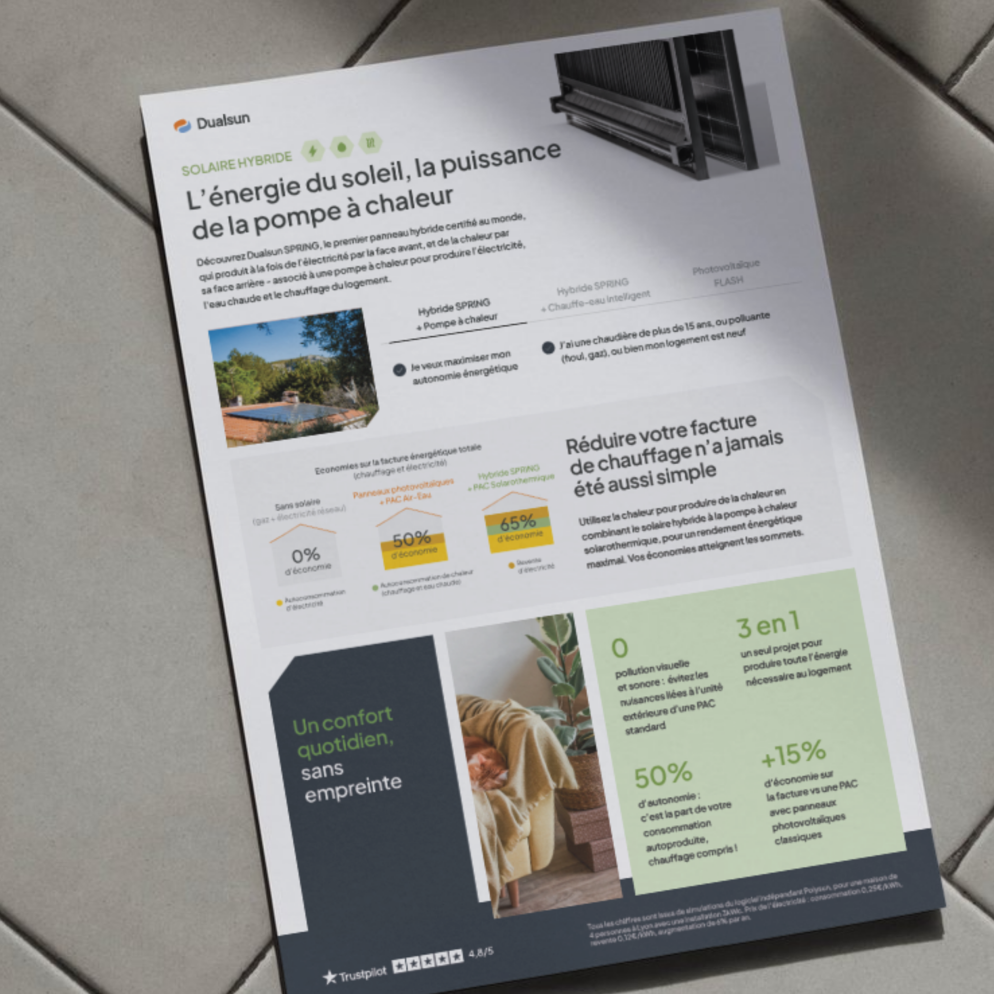 Paquet de 100 fiches de présentation de l'offre hybride + solarothermie pour vos rendez-vous clients.