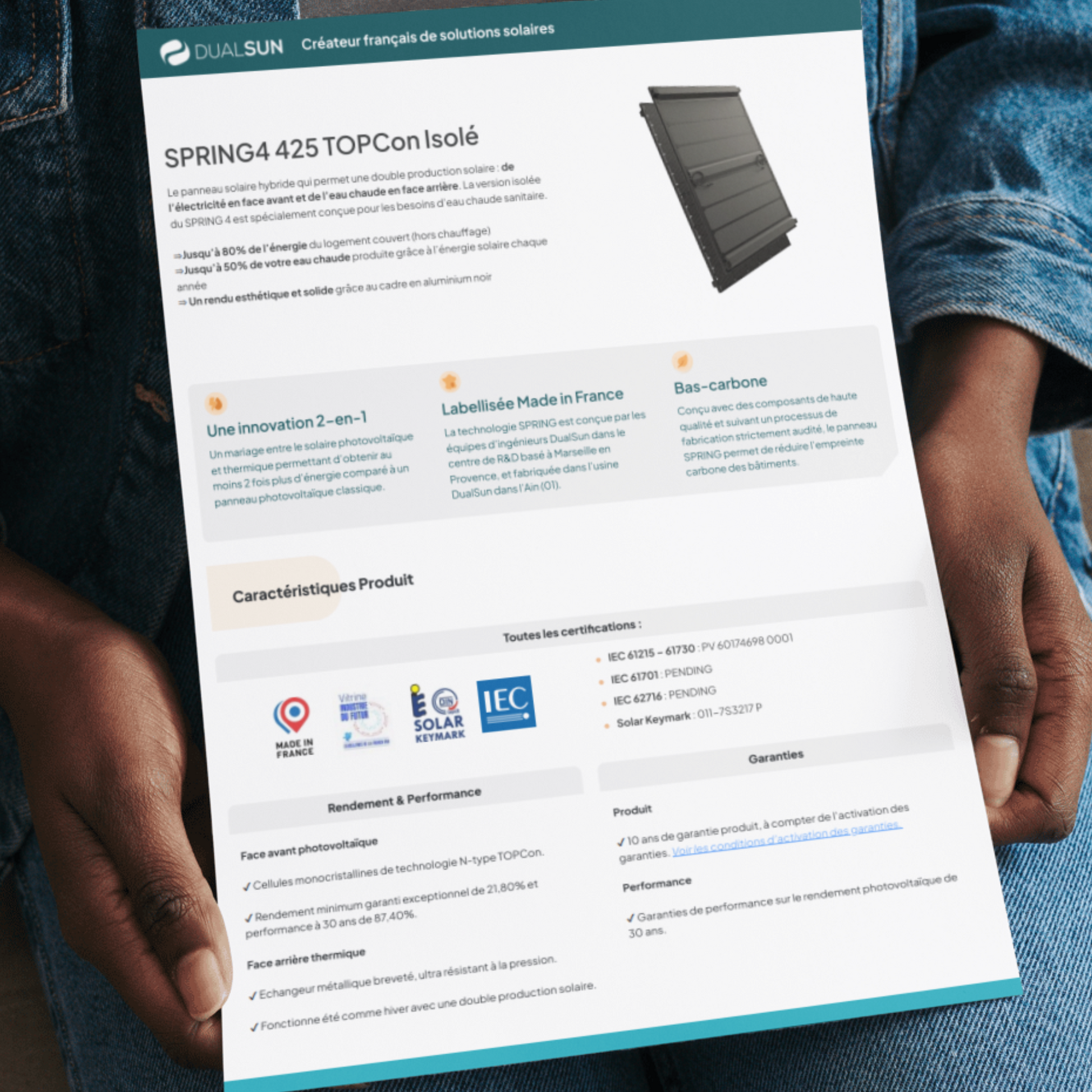 Pour des données toujours à jour, privilégiez la version en ligne de cette fiche technique concernant le SPRING4 425 TOPCon isolé (application principale : couplage CESI).